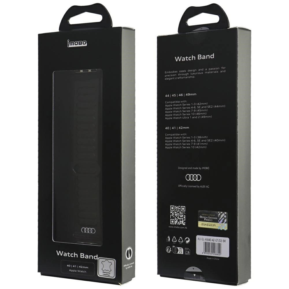 Audi Logo Genuine Leather Magnetic Ring Strap til Apple Watch 40 / 41 / 42 mm - sort