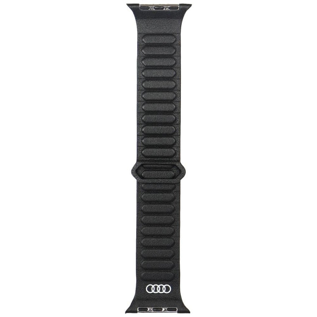 Audi Logo Genuine Leather Magnetic Ring Strap til Apple Watch 44 / 45 / 46 / 49 mm - sort