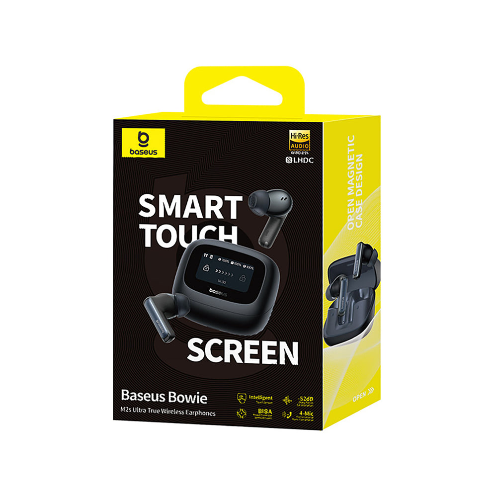 The Baseus Bowie M2s Ultra TWS are next-generation wireless in-ear headphones that combine excellent sound quality, innovative controls, and exceptional comfort. A smart case with a color LCD touchscreen lets you control music, volume, ANC, and EQ modes without reaching for your phone. Noise reduction down to -52 dB, Hi-Res Audio Wireless certification, and LHDC codec support guarantee studio-quality sound. Combined with Bluetooth 5.4, spatial acoustics, and ultra-fast low-latency mode, you have the perfect audio system for discerning listeners.