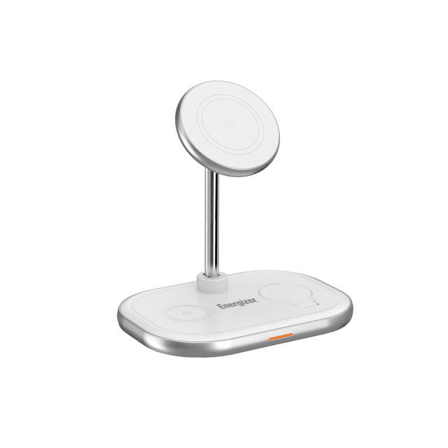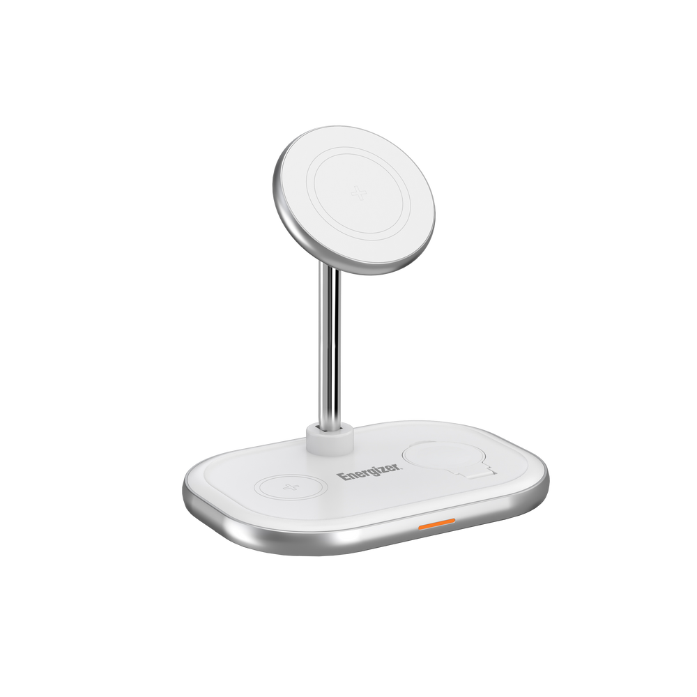 Energizer 3-i-1 trådløs oplader med 15W hurtigopladning. Hvid .