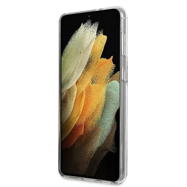 Excellent quality is confirmed by the Guess logo highlighted by a glitter gradient. The expressive look of fashionable cases will emphasize your everyday, unique style.
