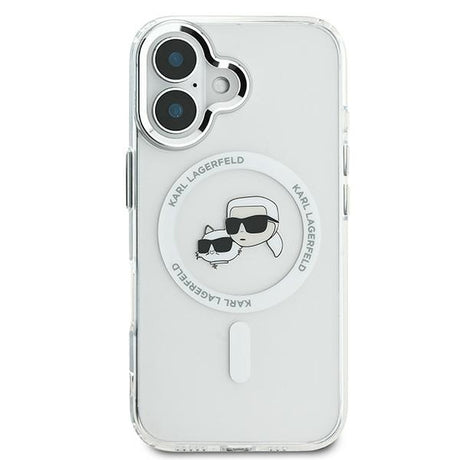 Karl Lagerfeld IML Metal Karl&Choupette Head MagSafe Case til iPhone 16 - Hvid