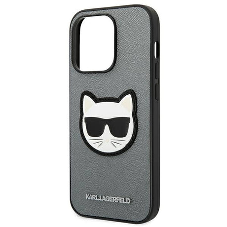 Karl Lagerfeld KLHCP14XSAPKHG iPhone 14 Pro Max 6,7" Sølv/sølv hårdkasse Saffiano Karlons Head Patch