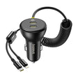 A built-in 1.4-meter Lightning cable with spring-retractable function provides convenience of use and tidiness in the car, while an additional USB-C port allows fast charging of both iOS and Android devices. The built-in cables offer lightning-fast charging - for example, for the iPhone 15 up to 52% or the Huawei Mate 60 Pro up to 65% in just 30 minutes.