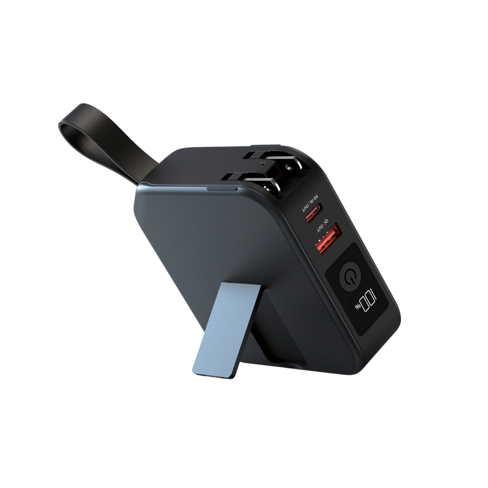 10K magnetisk trådløs powerbank med 20W PD, indbygget AC-stik og 4 udgange Alt-i-en-oplader med vægstik og indbygget kabel
