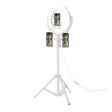 Optag vlogs og live-udsendelser med Remax CK-01. Stativet har en højdejusteringsfunktion og er udstyret med 3 smartphoneholdere og et LED-lys. Du kan justere holderen 360° og justere lysets farve og lysstyrke, så den passer til dine behov. Derudover tilslutter du selfie-sticken til strømforsyningen via et kabel med USB-stik (medfølger ikke).