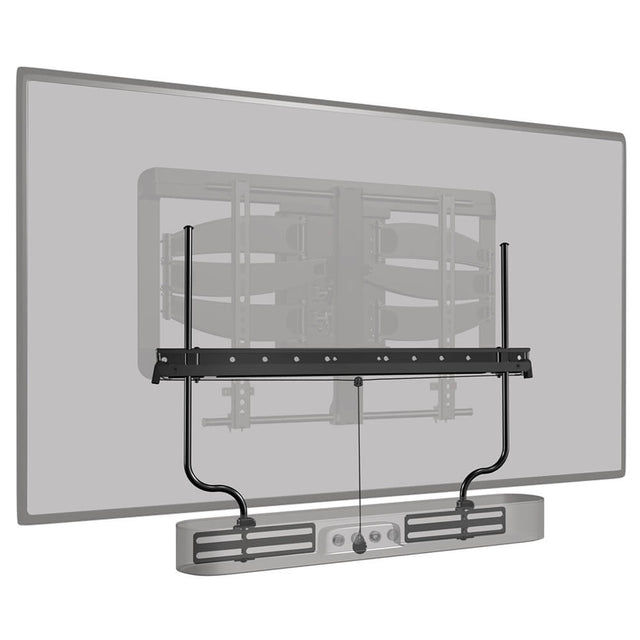 Dette beslag er kompatibelt med SANUS vægbeslag samt andre beslag, der er UL-certificeret. Det fungerer med tv-størrelser fra 32" til 90" og har en bred kompatibilitet med VESA-standarder. Når det bruges med et fuldbevægelses-vægbeslag, kan dette soundbar-beslag bevæge sig med tv'et. Dette giver en optimal lytteoplevelse.