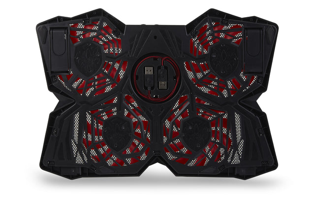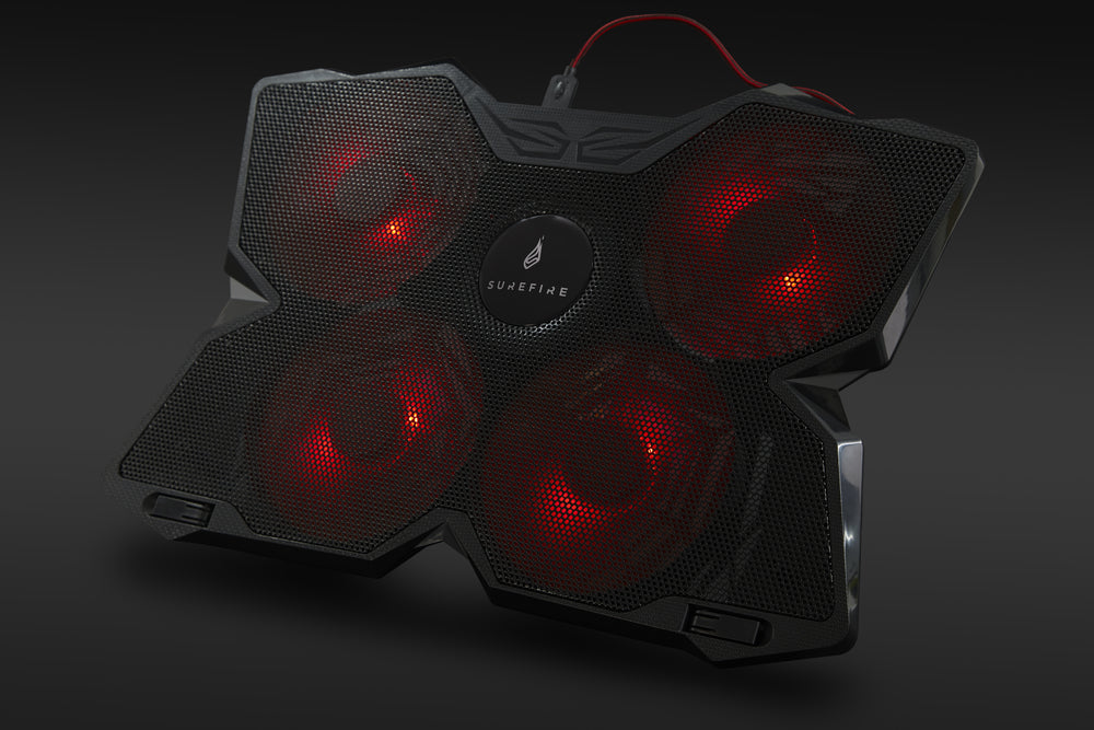 SureFire Bora. Maksimal skærmstørrelse kompatibilitet: 43,2 cm (17"), Antal indbyggede køleventilatorer: 4 stk, Ventilator diameter: 12 cm. Produktfarve: Sort, Materiale: Metal, Plast, Belysningsfarve: Rød. Værtsgrænseflade: USB, USB version: 3.2 Gen 1 (3.1 Gen 1). Strømkilde type: USB, Indgangsspænding: 5 V. Kabellængde: 0,68 m, Bredde: 408 mm, Dybde: 287 mm
