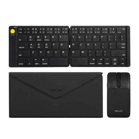 Set Trådløst sammenklappeligt Delux KF10-tastatur og MF10PR-mus