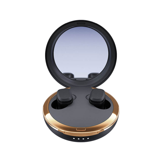 Det er helheden, der tæller, og den stilbevidste værdsætter normalt en perfekt blanding af mode og funktion. ADORE er som smykker til dine ører og kombinerer stil og funktion i perfekt harmoni. Etuiet har et indbygget spejl, så du kan holde øje med ydersiden, mens indersiden nyder de vellydende høretelefoner. ADORE er IPX-4 certificeret, så du aldrig behøver at bekymre dig under svedig træning. En opladning giver i alt 24 timers batteritid, 6 timers taletid og musiklytning samt en standbytid på op til 300 timer.