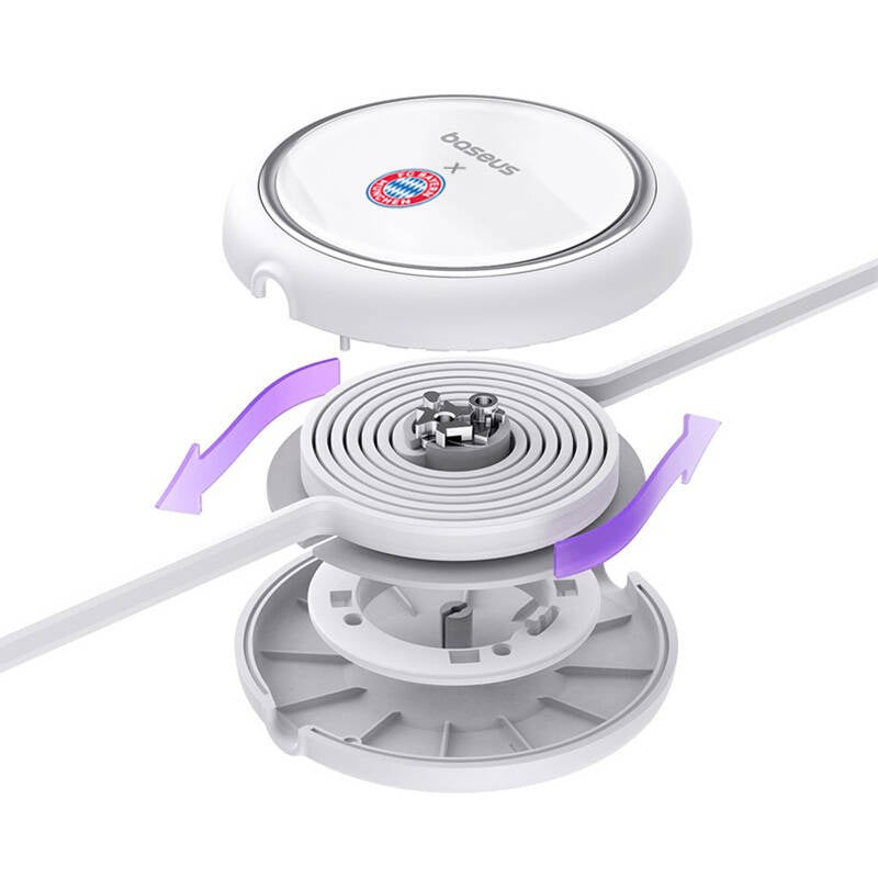 The Baseus Free2Pull USB-C to USB-C cable offers adjustable length in four ranges: 35 cm, 60 cm, 83 cm and 100 cm. Thanks to the built-in mechanism, it works smoothly and reliably, adjusting to your needs. At the same time, it is very lightweight, and when collapsed, it takes up little space for convenient carrying. The product is compatible with most devices equipped with a USB-C port. In addition, the Bayern Munich logo gives it a sporty touch, which any fan of this legendary club is sure to appreciate.