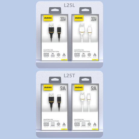 Dudao L25T USB-A-USB-C-silikonkabel 5A 1m - hvid