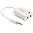 Hvid headset-adapter til headsets med separate hovedtelefon-/mikrofonstik - 3,5 mm 4-positions til 2x 3-positions 3,5 mm M/F .