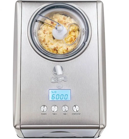Designet i rustfrit stål, og på toppen af maskinen er der et LCD-display med digital timer. På displayet vises konstant den resterende tid og den tilstand, som maskinen arbejder i (omrøring/frysning).