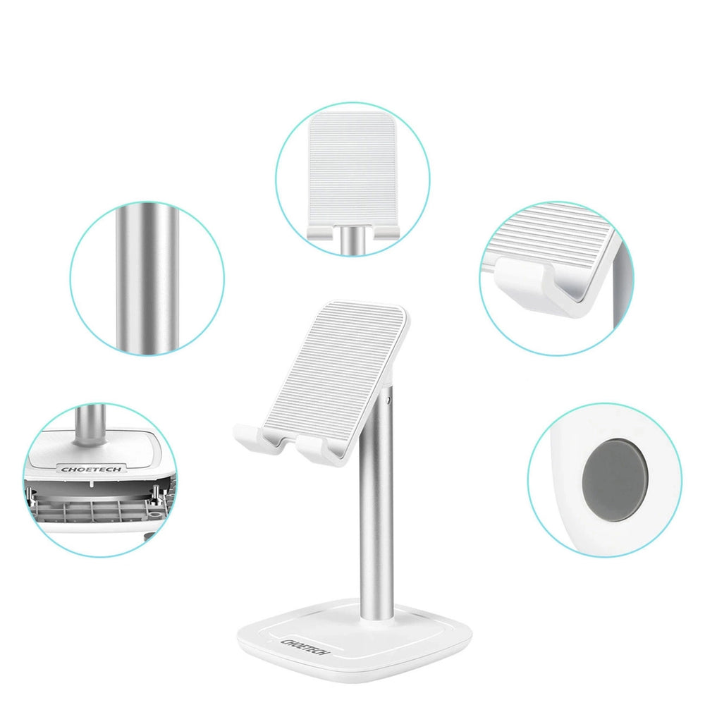 Choetech H035 aluminum stand for a phone or tablet with adjustable tilt angle - white and silver