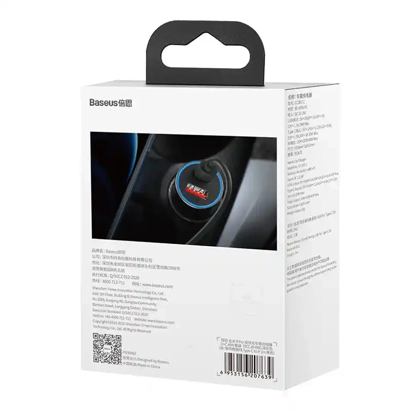 The car charger from Baseus supports 4 fast charging protocols. Qualcomm Quick Charge 4.0 will charge your device 4 times faster than a standard charger. In addition, the backward compatibility of Quick Charge 3.0, 2.0, AFC, MTK guarantees the fastest charging option. The Quick Charge 4.0 option is available on the Type-C port. QC-compatible phones include the Xiaomi 10/9. Huawei Fast Charge Protocol makes the device charge faster and doesn't heat up much while charging. Compatible phones include, for example, the Huawei Mate 30 or Honor Magic 2. Like Huawei, Samsung has its own fast charging protocol. With Samsung Adaptive Charge, your phone will charge much faster than with a regular charger. The technology from Samsung will charge models like the S20, S9, etc. Power Delivery is a high-voltage charging standard that will charge your device quickly and safely. The charger supports 20W and 18W version. Power Delivery is compatible with the iPhone 12, for example. Be sure to check if your device supports the listed fast charging standards. You will find the Baseus Simple Wisdom Data Cable USB-C to lightning 1m included.