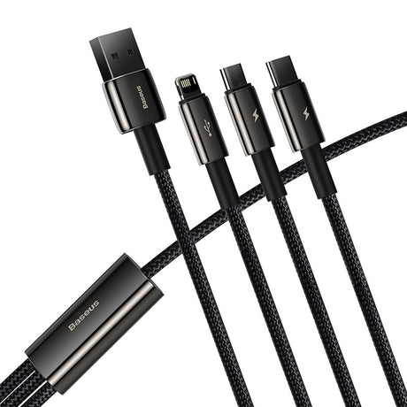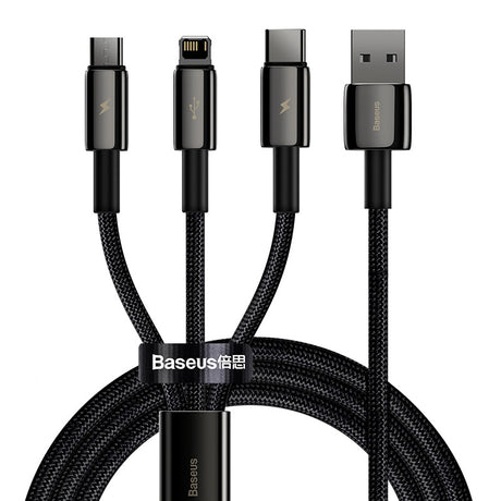 USB-kabel 3in1 Baseus Tungsten Gold, USB til mikro USB / USB-C / Lightning, 3,5 A, 1,5 m (sort)