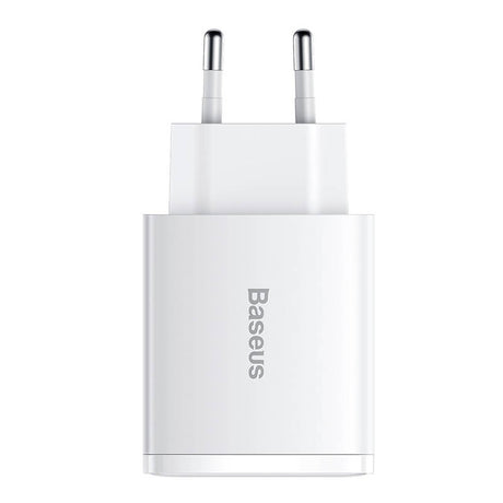Ładowarka sieciowa Baseus Compact Quick Charger, 2xUSB, USB-C, PD, 3A, 30W (biała)