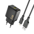 Dudao A23LEU 2.4A GaN EU USB-A Wall Charger with USB-A to Lightning Cable - Black