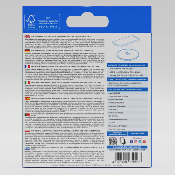 prio Trådløs hurtigoplader 15W (USB C) sort .