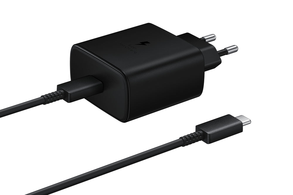 Samsung EP-TA845. Oplader type: Indendørs, Strømkilde type: Vekselstrøm, Oplader, kompabilitet: Smartphone. Maksimal udgangsspænding: 21 V. Antal USB type-C-porte: 1, Hurtig opladning. Produktfarve: Sort