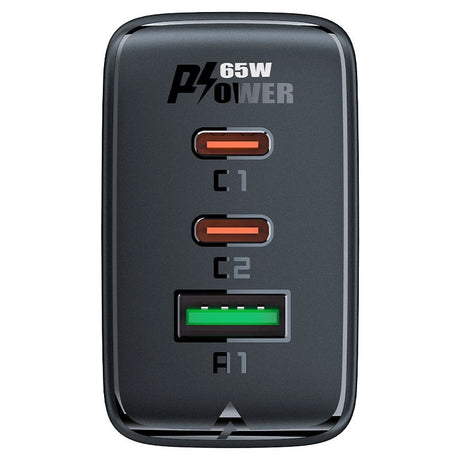 Acefast hurtigoplader GaN (2xUSB-C / USB-A) PPS / PD / QC4+ 65W sort (A41)