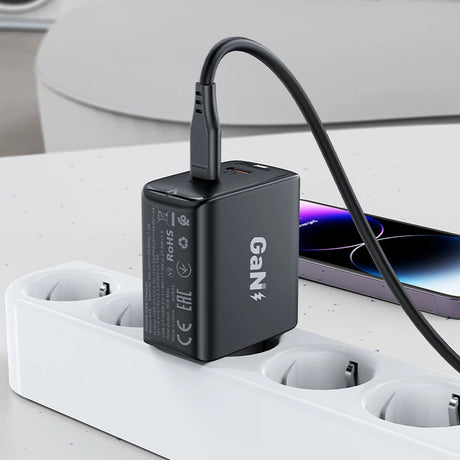 Acefast A57 PD 35W GaN oplader 2 x USB-A + USB-C med 3 porte - sort