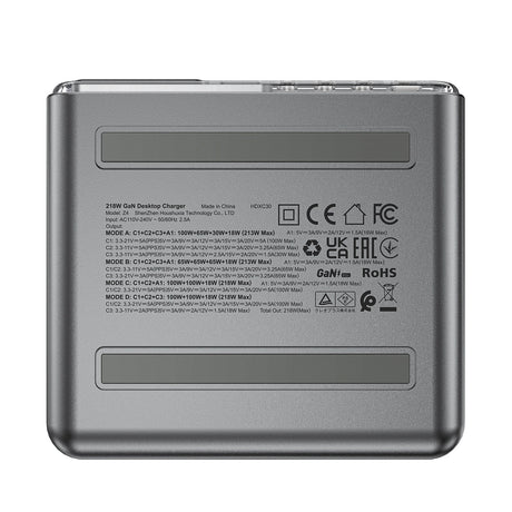 Acefast Z4 PD 218W GaN 3 x USB-C + USB-A multifunktionsadapter med 4 porte - Grå