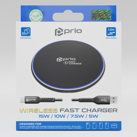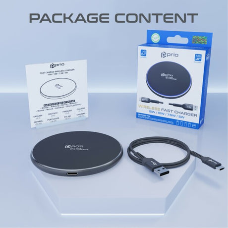 prio Trådløs hurtigoplader 15W (USB C) sort