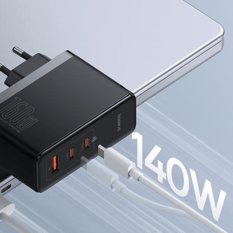 Baseus GaN5 Pro GaN oplader 2x USB-C / USB-A 160W - sort + USB-C - USB-C 240W kabel - sort