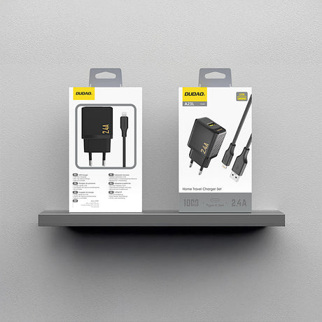 Dudao A23LEU 2.4A GaN EU USB-A Wall Charger med USB-A til Lightning Cable - sort