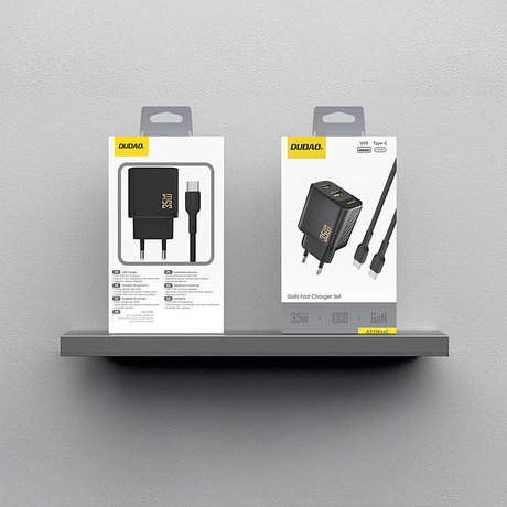 Dudao A27MaxCEU PD QC 35W USB-A USB-C Wall Charger med USB-C-kabel - sort