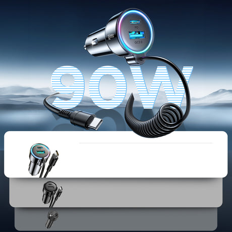 Joyroom JR-CL07 72W 3in1 Biloplader med 1,6m USB-C-kabel Sort