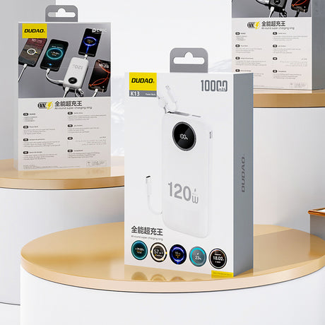 Dudao K13Pro 20000mAh Powerbank med indbygget kabel - hvid