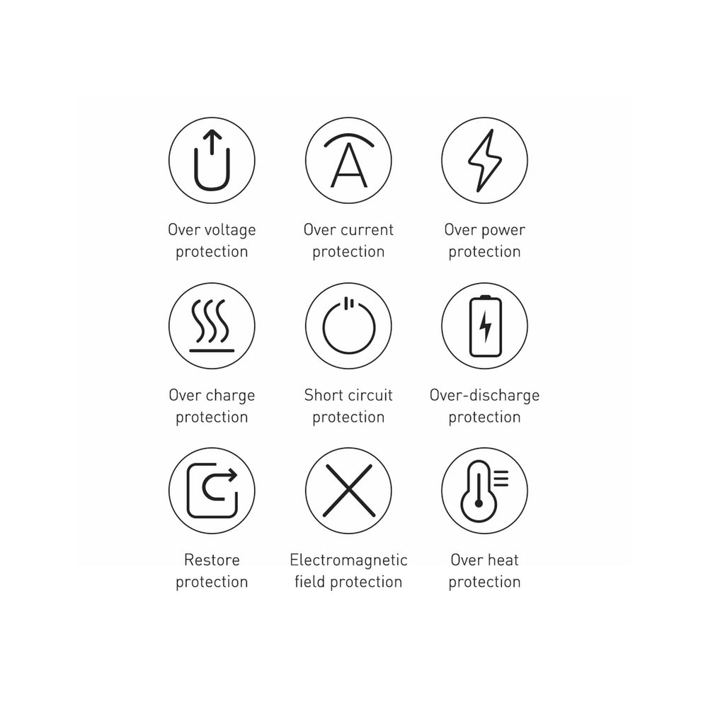 • Outputs: USB1 / USB2 18W (5V / 3A , 9V / 2A, 12V / 1.5A); USB-C 20W (5V / 3A, 9V / 2.22A, 12V / 1.5A)