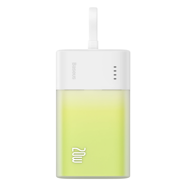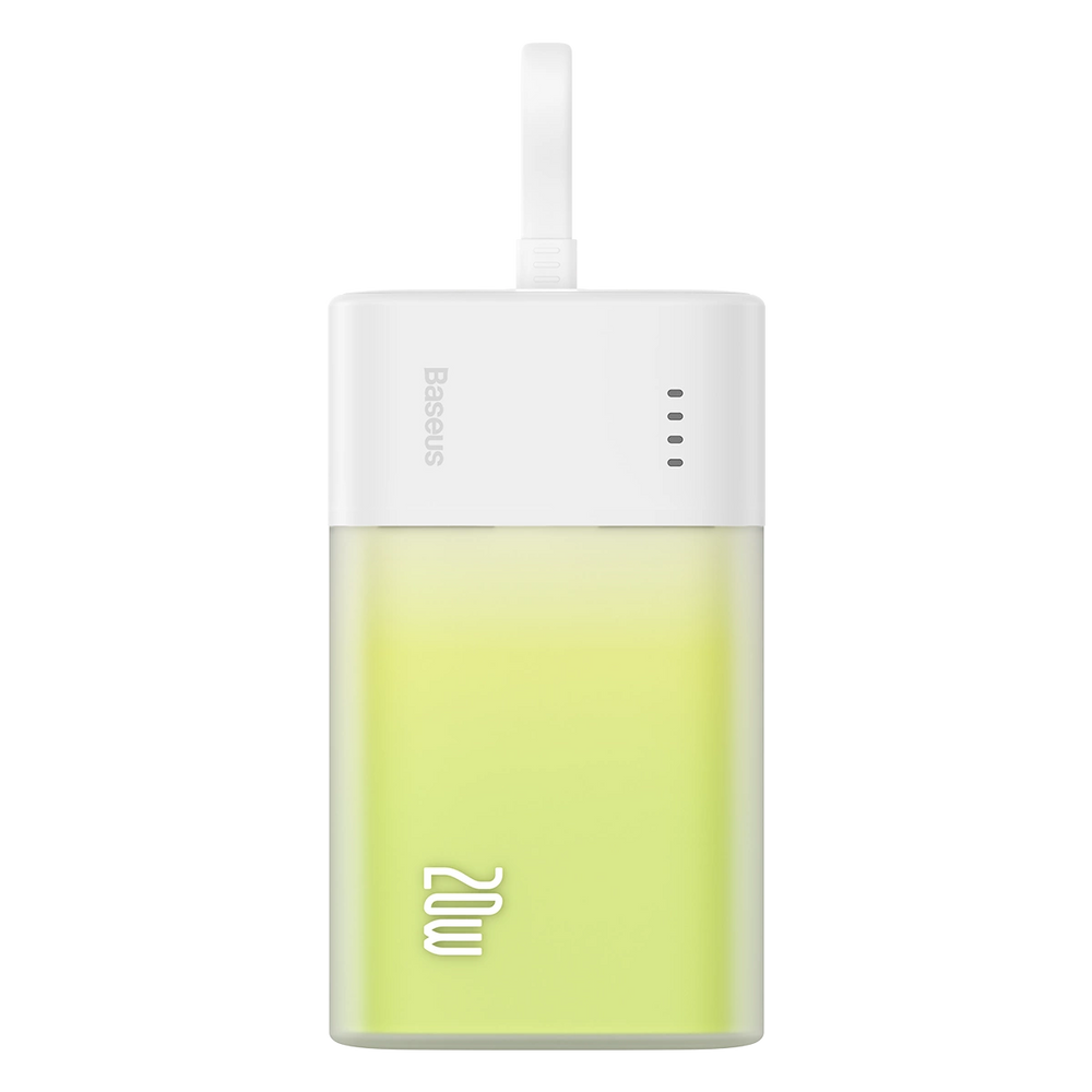 Baseus Popsicle 5200mAh 20W Powerbank with Built-in Lightning Cable (+ White Baseus Simple USB-C - USB-C 60W/20V/3A/30cm Cable) - White-Green