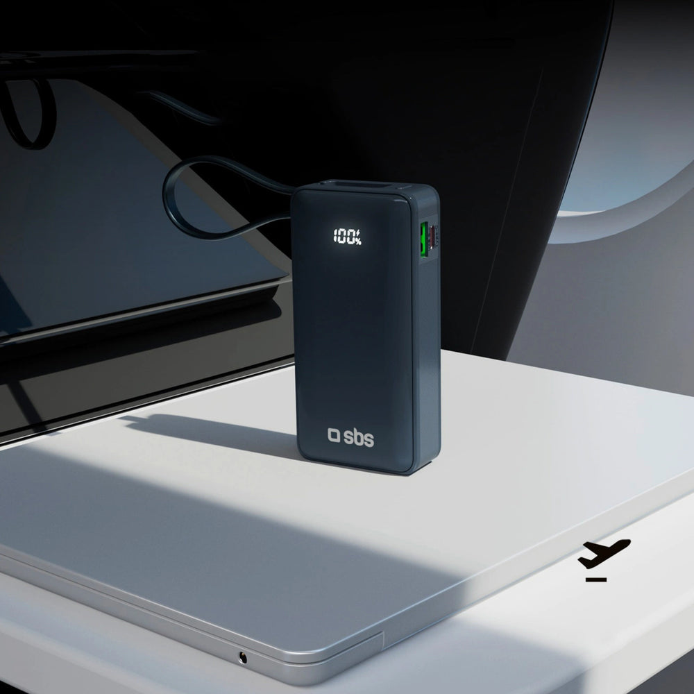 Powerbank SBS 10000 mAh 20W med indbygget USB-C-kabel og digital skærm - mørkegrå .