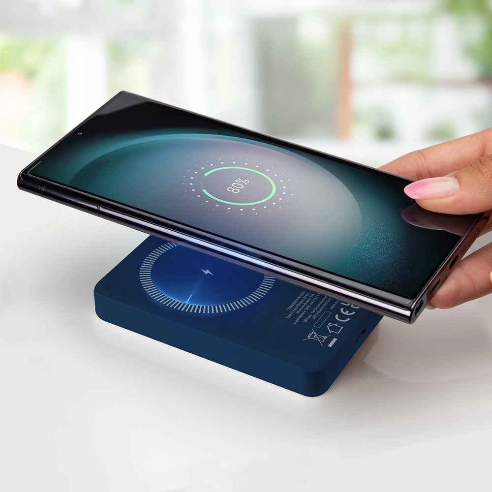 Thanks to the 5W wireless charging function, you can charge your smartphone, speaker or watch by simply placing them on the surface of the powerbank.