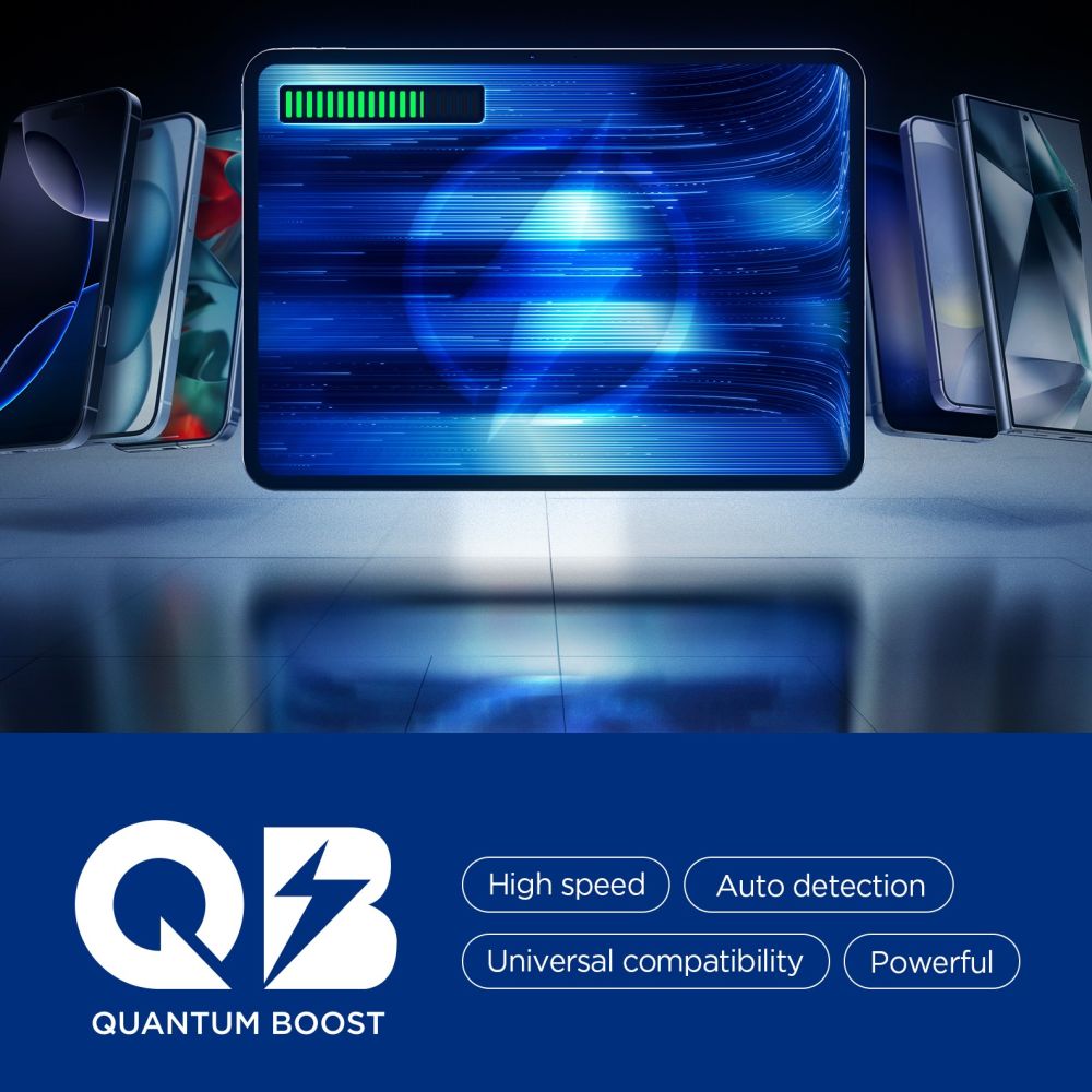 Die Spigen EA3030 ist eine leistungsstarke Powerbank mit einer Kapazität von 30.000 mAh und einer Leistung von 30 W, die zuverlässiges und schnelles Laden mehrerer Geräte gleichzeitig ermöglicht. Ausgestattet mit zwei USB-C-Anschlüssen und einem USB-A-Anschluss unterstützt sie sowohl moderne als auch traditionelle Mobilgeräte. Dank der Quantum Boost-Technologie passt sie die Ladeparameter intelligent an das angeschlossene Gerät an und sorgt so für optimale Geschwindigkeit und Stromsicherheit.