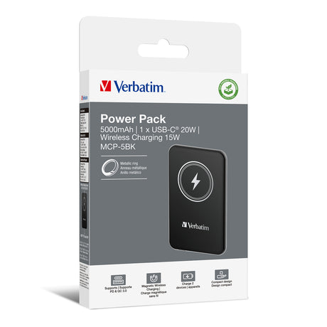 Verbatim Charge 'n' Go Lithium polymer (LiPo) 5000 mAh Trådløs opladning Sort