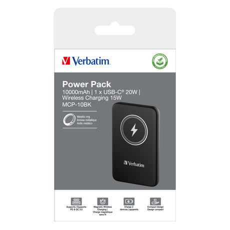 Verbatim Charge 'n' Go Lithium polymer (LiPo) 10000 mAh Trådløs opladning Sort