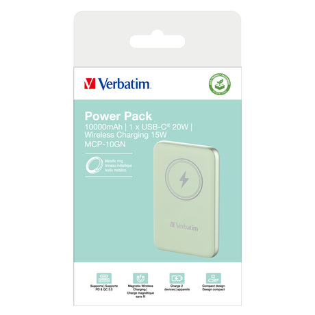 Verbatim Charge 'n' Go Lithium polymer (LiPo) 10000 mAh Trådløs opladning Grøn