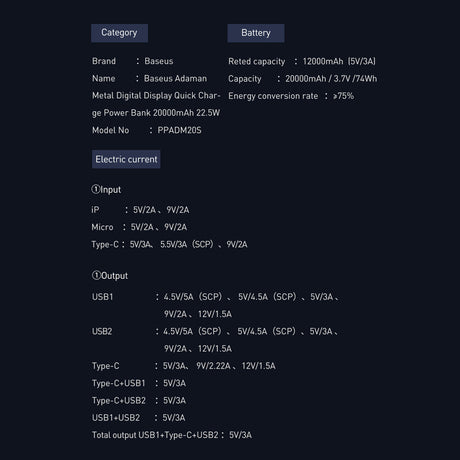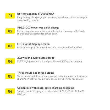 Baseus Adaman powerbank med hurtig opladning 20000mAh 22,5W + USB-A - USB-C 3A kabel 0,3m sort