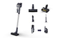 Samsung VS15A60AGR5. Produkttype: Stick vakuum, Støvbeholder type: Poseløs, Produktfarve: Sort, Sølv. Rengøringstype: Dry, Jordadskillelsesmetode: Multi cyklonisk, Rengøring af overflader: Gulvtæppe, Hårdt gulv. Strømkilde: Batteri, Maksimal indgangseffekt: 410 W, Motoreffekt: 150 W. Pakkebredde: 214 mm, Pakkedybde: 265 mm, Pakkehøjde: 757 mm. Bredde: 250 mm, Dybde: 203 mm, Højde: 1120 mm