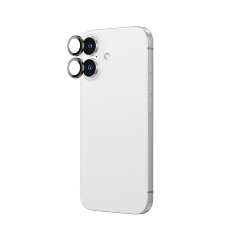 AmazingThing AR Aluminium 2 Lens Glass med Kamera Lens Frame til iPhone 16 / 16 Plus - sort