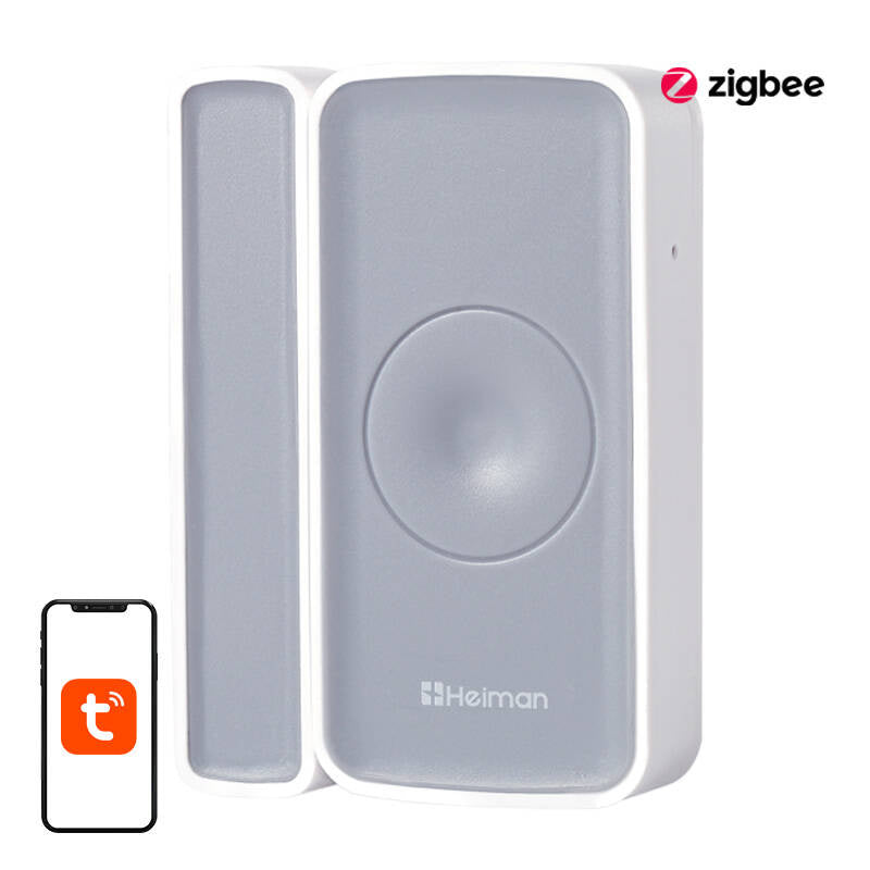 The Heiman HS1DS-EF sensor is an advanced security device that monitors the status of doors and windows, notifying the user via a popular smartphone app when they are opened or closed. Equipped with Zigbee technology, the sensor offers a network range of up to 100 meters in open spaces, providing a reliable connection and fast information transfer.