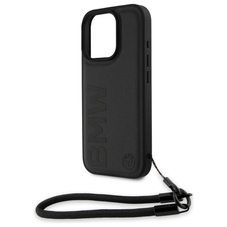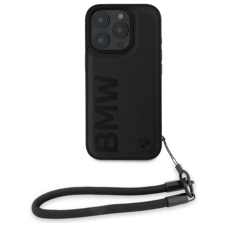 BMW Signature læder Wordmark Cord Case til iPhone 15 Pro Max - sort