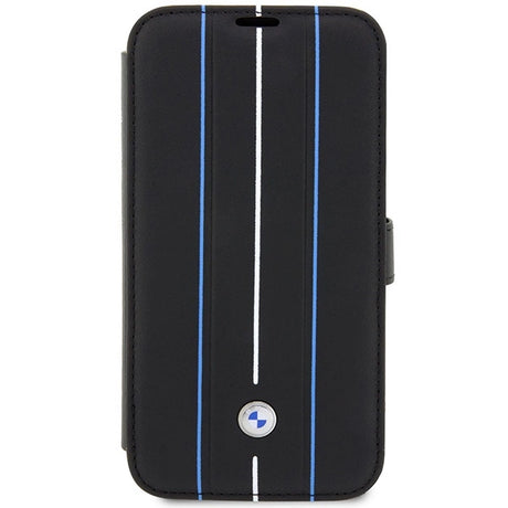Case BMW BMBKP14X22RVSK iPhone 14 Pro Max 6.7" sort/sort bogreol læder stempel blå linjer