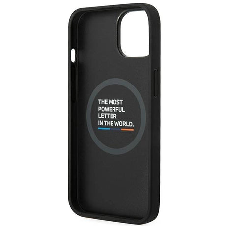 Case BMW BMHMP14S22PTDK iPhone 14 6.1 " sort / sort læderstempel Tricolor Magsafe