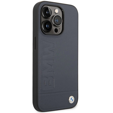 Case BMW BMHMP14LSLLNA iPhone 14 Pro 6,1" marine/marine hårdkasse læder Hot Stamp MagSafe